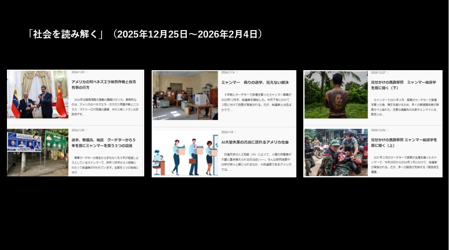 ミャンマーの選挙やアメリカのベネズエラ作戦に関する記事も紹介