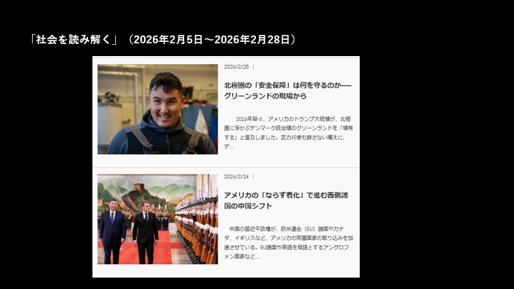 2026年が明けてすぐ、アメリカのトランプ大統領は、北極圏に浮かぶデンマーク自治領のグリーンランドを「領有する」と発言しました。武力行使も辞さないその姿勢に、デンマークとグリーンランド自治政府は強く反発。欧州諸国もこれを支持する姿勢を示すと、トランプ大統領は、関税をカードに圧力をかけるなど、一時、緊張が走りました。その後、アメリカとNATO(北大西洋条約機構)はグリーンランドの「将来的な合意の枠組み」で合意したものの、状況は依然として余談を許さない状況です。