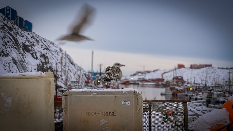 ヌークは北極圏のすぐ南に位置し、冬の日照時間はおよそ5時間。取材当時、日中でも気温はマイナス3度前後まで冷え込んでいた。