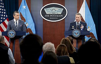国防総省(ペンタゴン)でイラン攻撃について記者会見する統合参謀本部議長のダン・ケイン大将(2026年3月19日撮影)(c) U.S. federal government /wikimediacommons