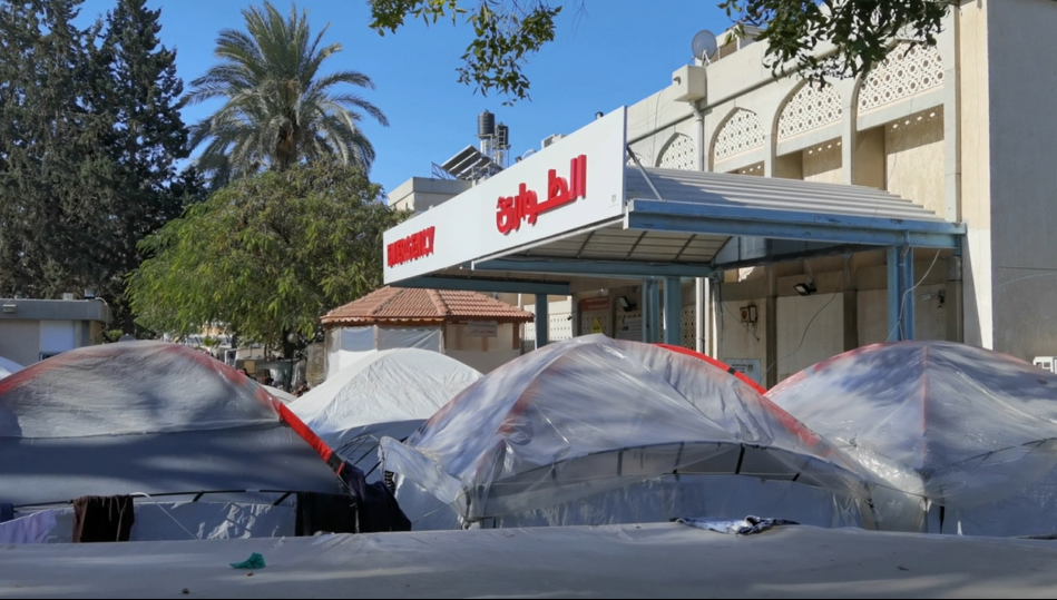 6回の派遣のうち最初の3回はガザ地区南部のハンユニスのヨーロピアンガザ病院で勤務したのですが、院内の廊下や階段の踊り場だけでなく、病棟の外まで無数のテントが張られ、かろうじてベッドを通せるスペースしか空いておらず、病院全体がまるで避難民キャンプのようでした。