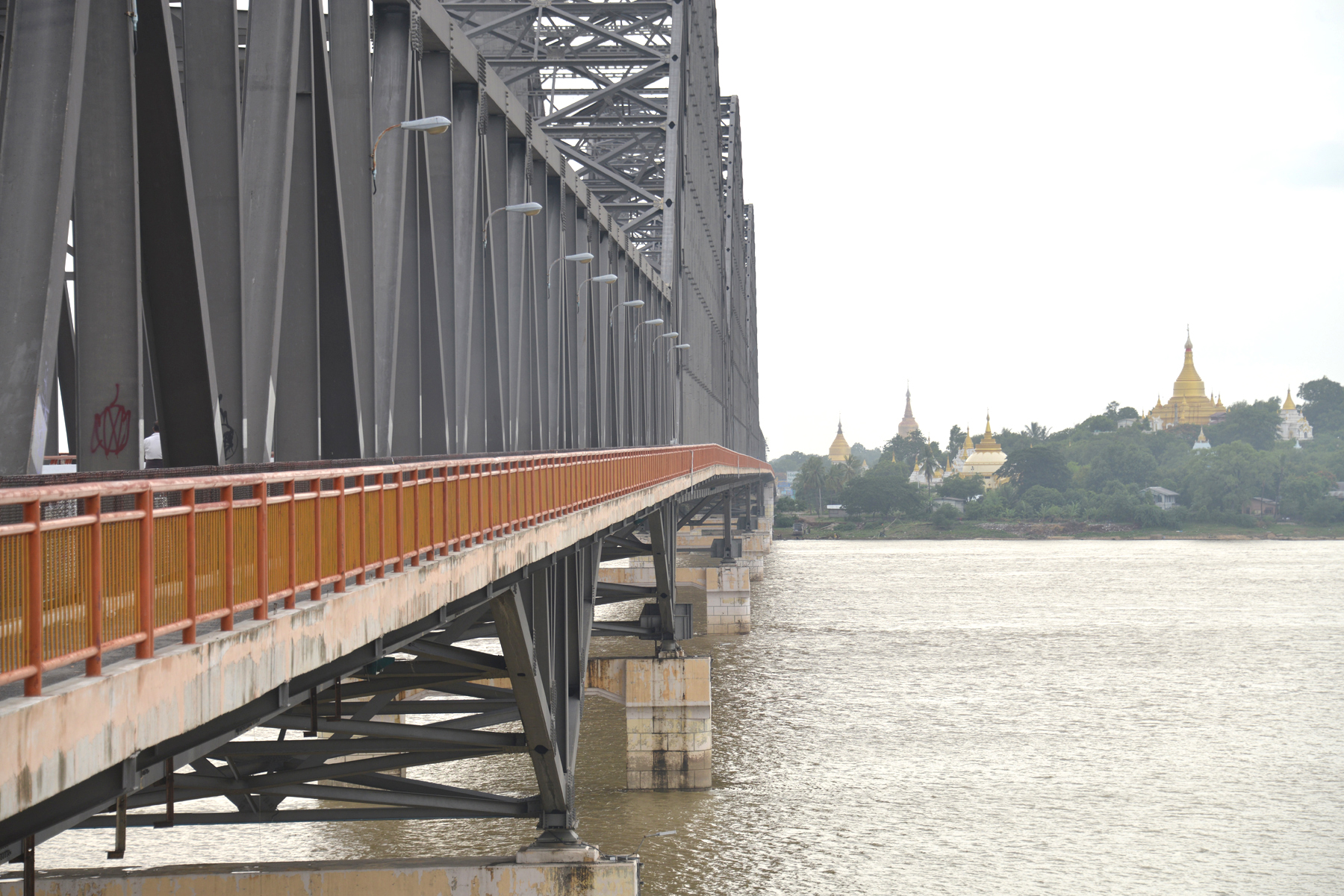 さらに南下すると、エーヤワディー橋が目の前に現れる。堂々たるたたずまいが目を引くこの橋は、ザガインとマンダレー、二つの町をつなぐ重要な交通路であり、長年にわたり地域の発展を見守ってきたが、今回の地震により崩落した。