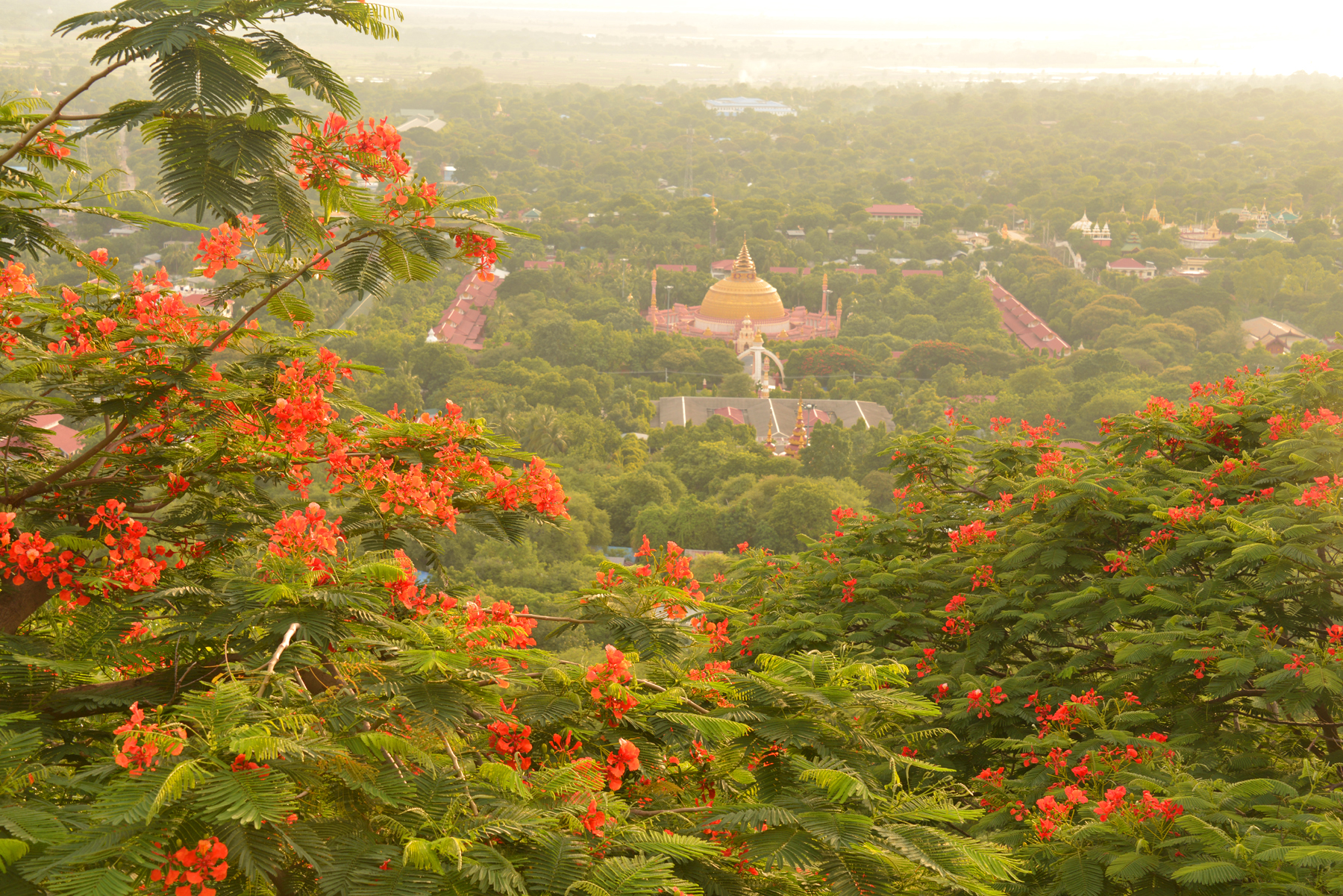 マンダレーの町を一望できるマンダレー・ヒルからの景色も素晴らしいものだった。特に、夕日が沈む時間帯の景色は格別で、広大な平野に広がる町なみと、ゆったり流れるエーヤワディー川の水面が次第に夕焼けに染まっていくのを眺めていると、この町の悠久の歴史を感じずにはいられなかった。