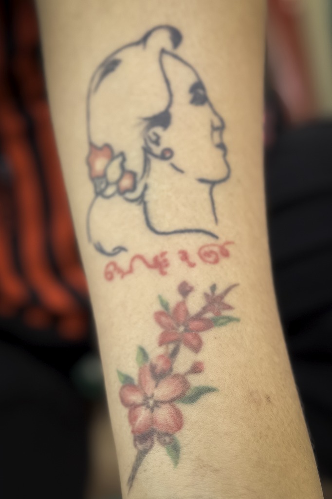 女性の刺青がポピュラーになってきている。腕の内側の見えにくいところに「囚われている彼女」の刺青を彫っている女性がいた。ミャンマーの刺青は単なるファッションだけではない。ヤンゴン / 2024