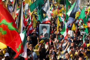 - People celebrate what they say is Iran’s victory, at the Iranian embassy in Beirut