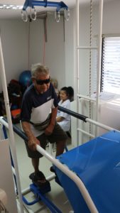 理学療法士の指導のもとでリハビリのための運動を行う高齢者