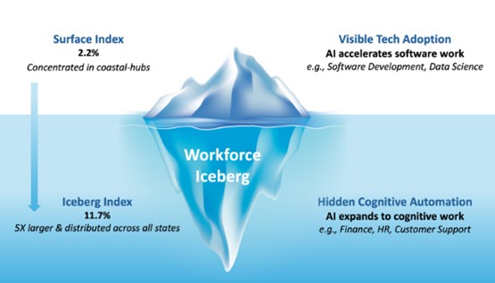 AIで代替可能な職種は氷山の一角であり、実際にはAIに脅かされる仕事はかなり多いとの説もある (c) Oak Ridge National Laboratory